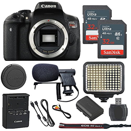 Canon Eos Rebel T6i 24 2mp Digital Slr Camera Body Only 2 32gb Sandisk Ultra Sd Cards Led Video Light Mini Condenser Microphone Memory Card Reader Certified Refurbished Walmart Com Walmart Com