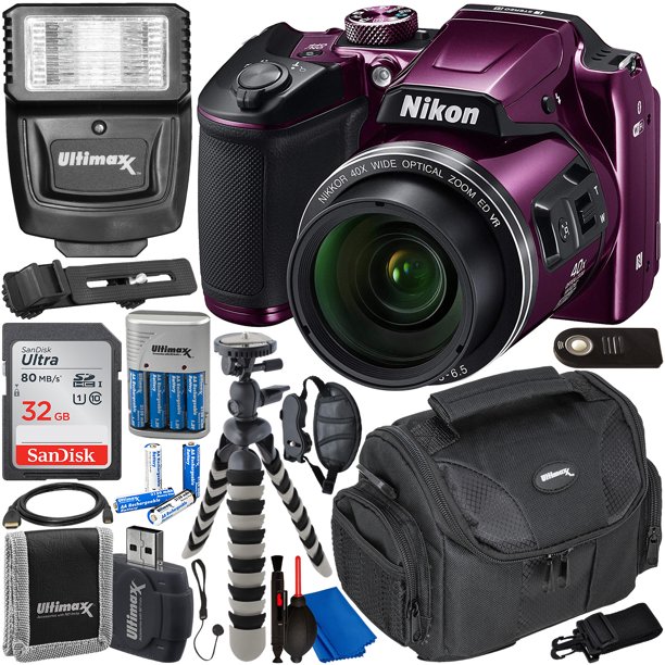 Nikon Coolpix B500 Digital Camera Plum With Essential Accessory Bundle Includes Sandisk Ultra 32gb Sdhc Memory Card Rechargeable Batteries 8 Aa Dock Charger Digital Slave Flash Much More Walmart Com